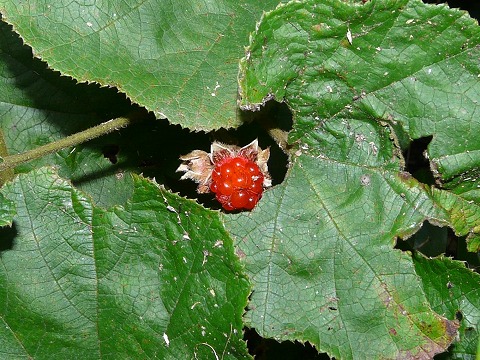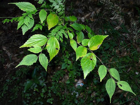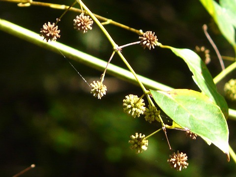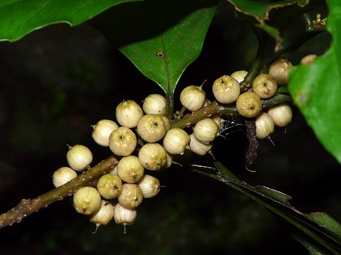 不動堂では護摩供養と火渡りの最中で観光客や信者さんでいっぱいでしたが、時間を気にしながら行者の滝まで行きました。休憩所が使えず、昼食場所がなかったので、急な階段を上り、車道に出て、少し広くなった道路わきで昼食を済ませました。その後、今日のメインであるキジョランの果実を見に行きました。駐車場に下る道沿いではタマミズキやカギカズラの果実とキジョランの果実も見ることが出来ました。
