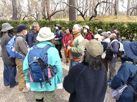 亀岡駅からしばらく歩くと、丹波亀岡城(亀山城)の外堀にあたる南郷池を中心に整備された南郷公園に出ます。澤田さんから南郷公園や亀岡城址について説明がありました。桜が満開になる頃には、お花見の人々で賑わうことでしょう。