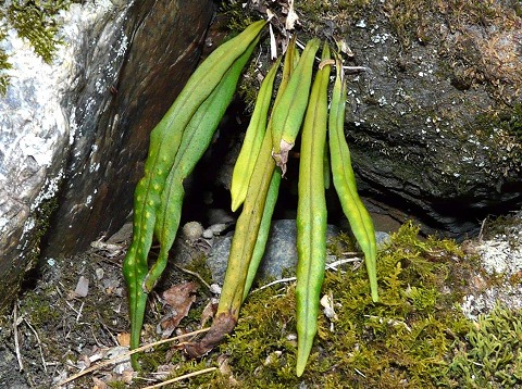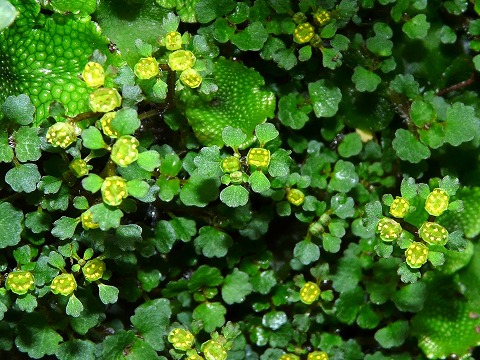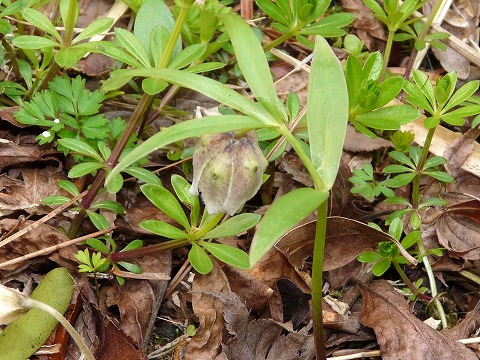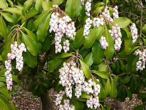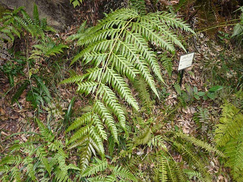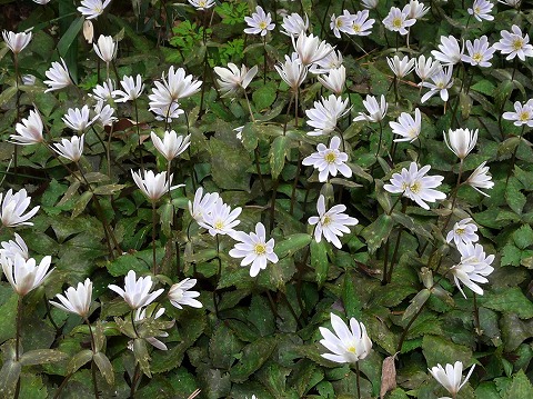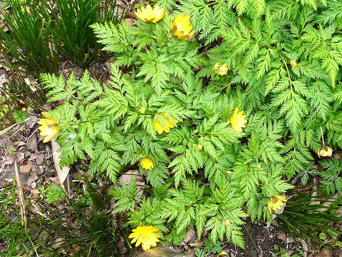 植物園へと続く道沿いの苔むした石垣には、ノキシノブ、クロノキシノブ、フジノキシノブなどがたくさん見られました。植物園の入り口付近では、アケボノアセビの薄ピンク色の花が満開で、足元には、フクジュソウ、ユキワリイチゲが咲き、開花を終えたセツブンソウも見られました。