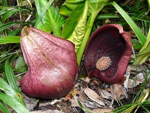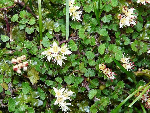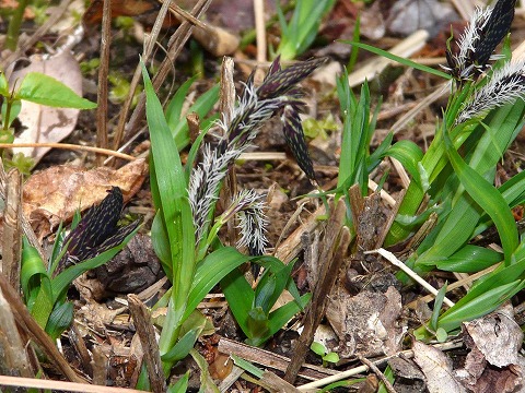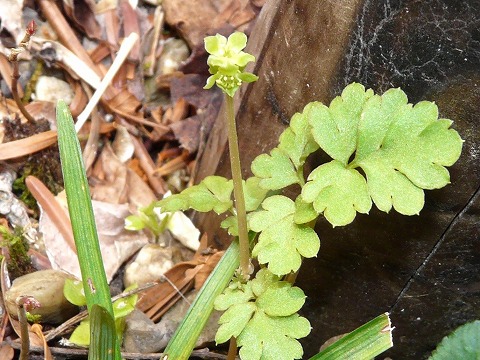 午後は中ノ島へ下り、植物を観察しました。湿り気のある場所では、ネコノメソウ、シロバナネコノメソウ、コガネネコノメソウが開花し、ザゼンソウは暗紫色の苞(仏炎苞)の中に肉穂花序を包みこみ、まさに座禅を組んでいるようでした。イノデ、ベニシダ、オオカナワラビ、ミヤコカナワラビ、イシカグマ、ハチジョウカグマなどのシダ類もたくさん見られ、これからは夏緑性のシダの芽出しの季節を迎えます。中ノ島の奥には、亀岡市指定文化財天然記念物のコノハナザクラの立派な株が見られました。花の時期にぜひ訪れたいと思いました。午後3時ごろになり、植物園の入り口付近で、一応解散となりました。